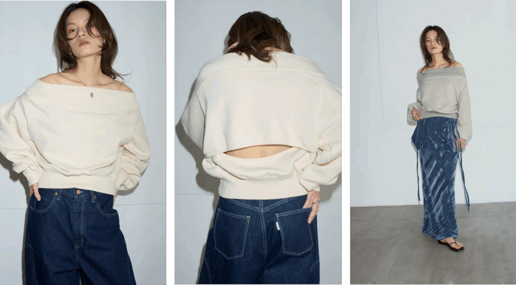 【Htage】バックオープンオフショルスウェット